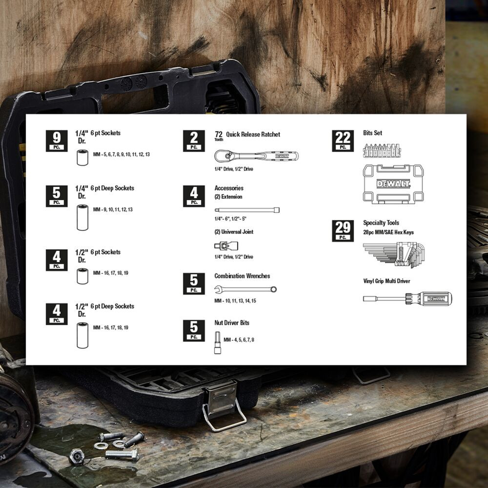 Szerszám készlet, Dugókulcs készlet, 89 db-os (DeWALT DWMT73800-1)